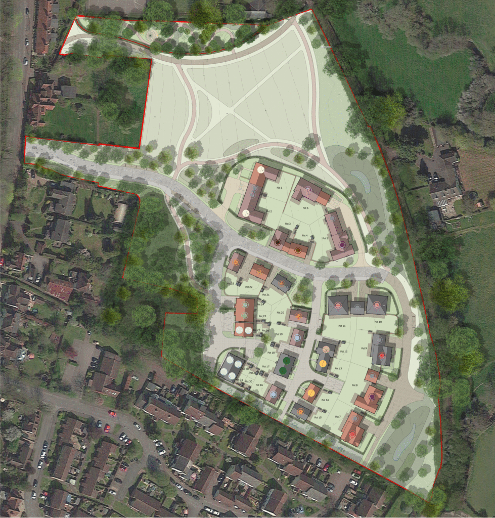 The plans are for 31 high-quality new homes with 40% of these will be designated affordable. Green space is to be retained, and the plans also include